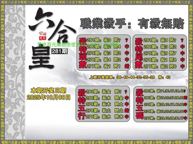 281期:六肖 | 鼠猪猴羊蛇狗 | 羊47准 |